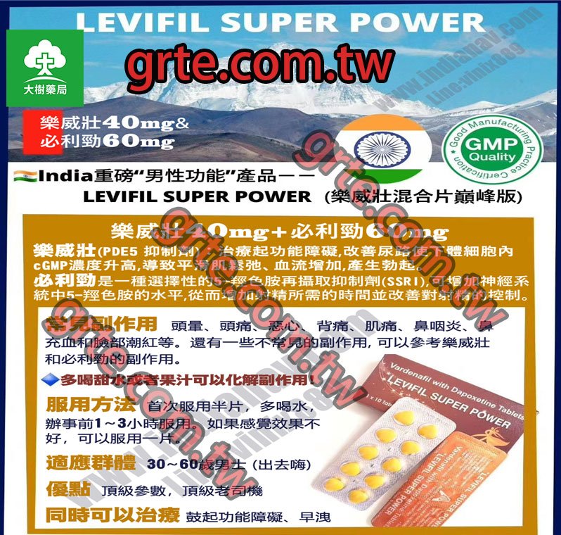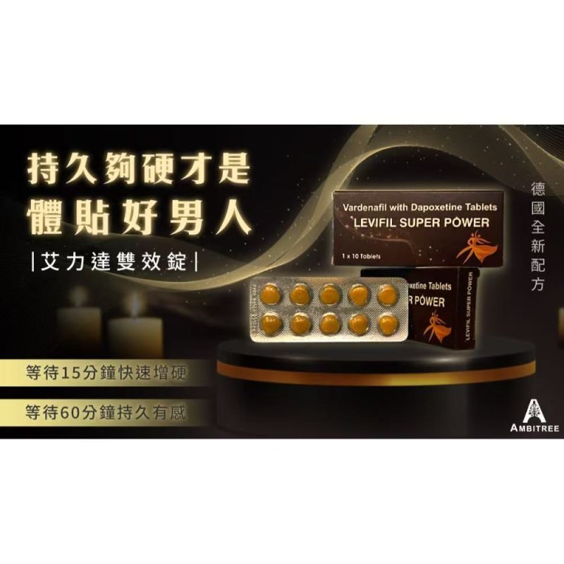 樂威壯雙效片(Levifil Super Power)由印度Ambitree藥廠生產,結合「伐地那非40mg」與「達泊西汀60mg」,實現雙重作用: