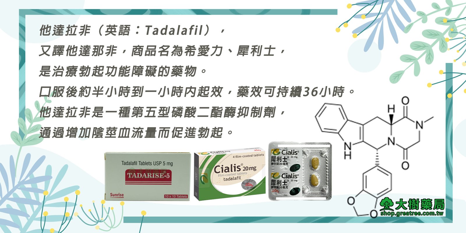 - 他達拉非20mg:改善勃起功能
