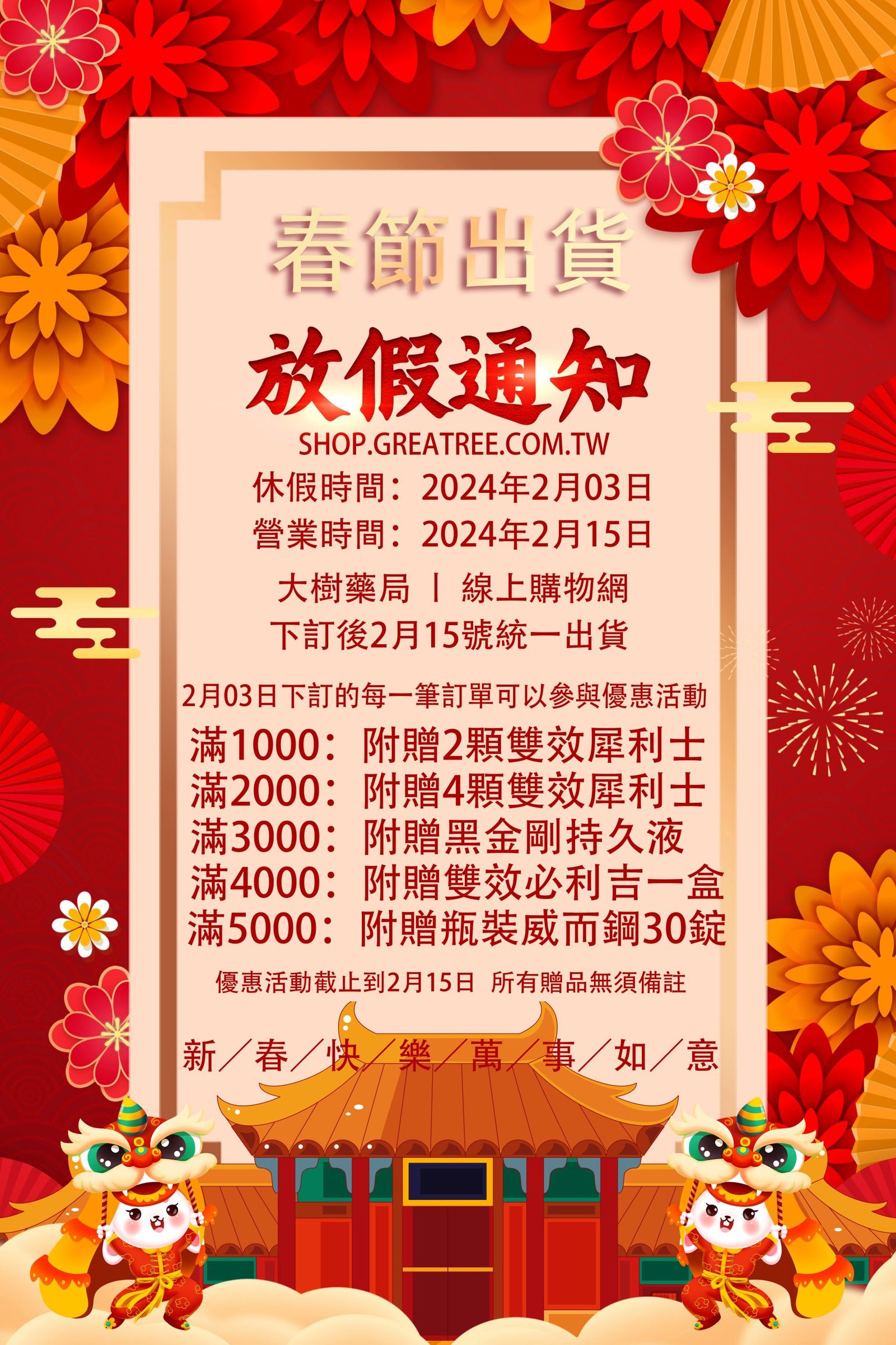 • 春節後恢復訂單出貨日:2024/2/15(四)