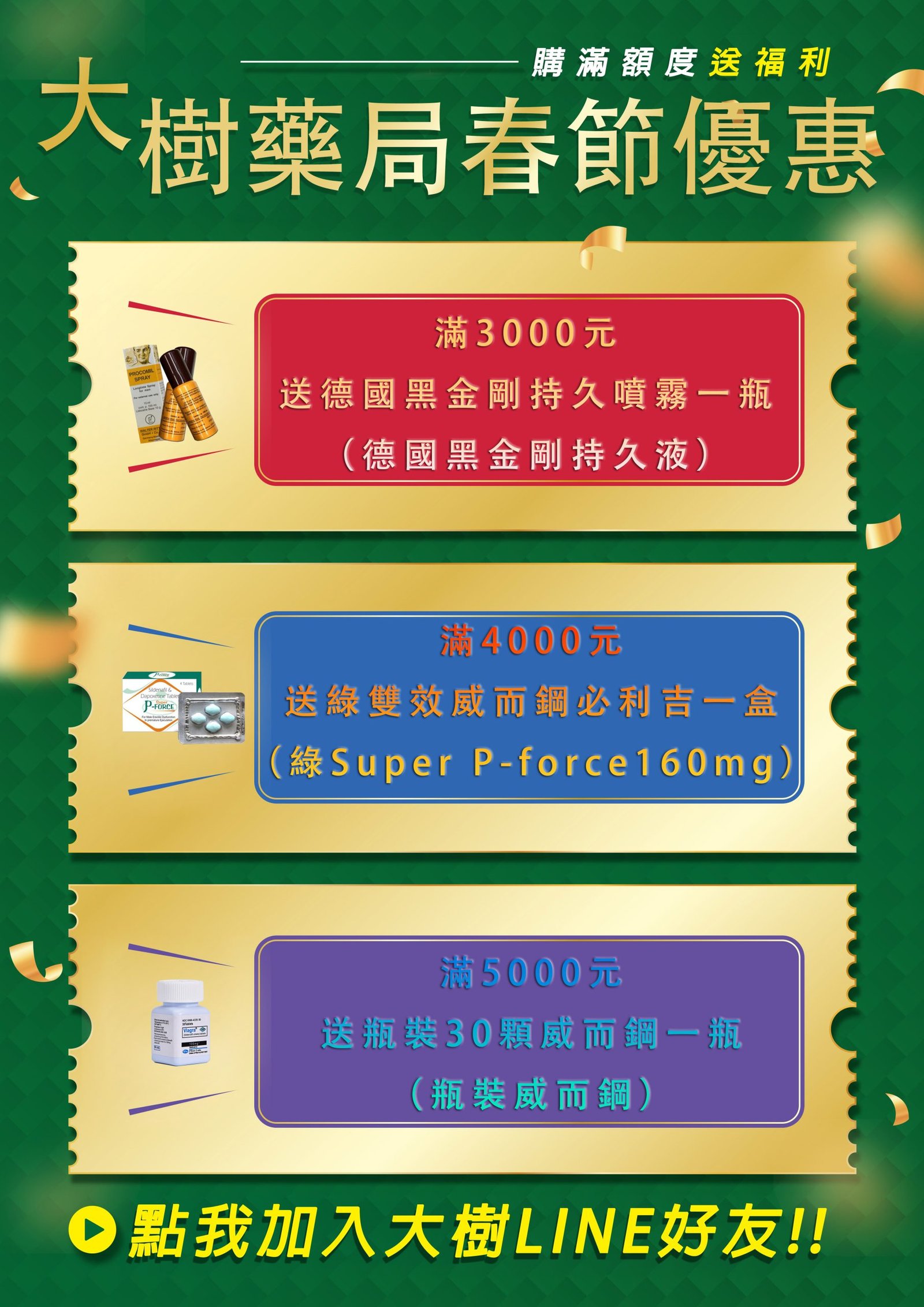 • 下訂滿5000元:附贈瓶裝威而30錠/瓶