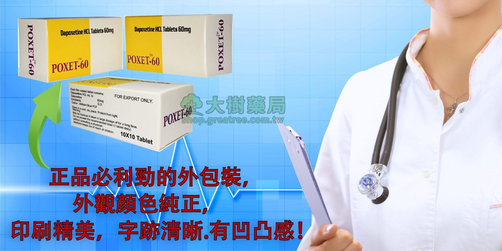 包裝外觀:印度版包裝標示為POXET-60,有印度藥廠標識。