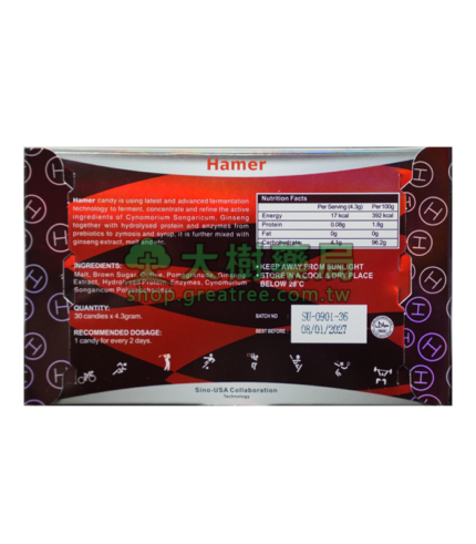 精力充沛:提高我們的機能,並保持一個健康和快樂的生活,從汗馬糖中獲取氨基酸的補充,尤其是在鍛煉之中,它會很快的使您的身體更加敏捷和強勁有力。