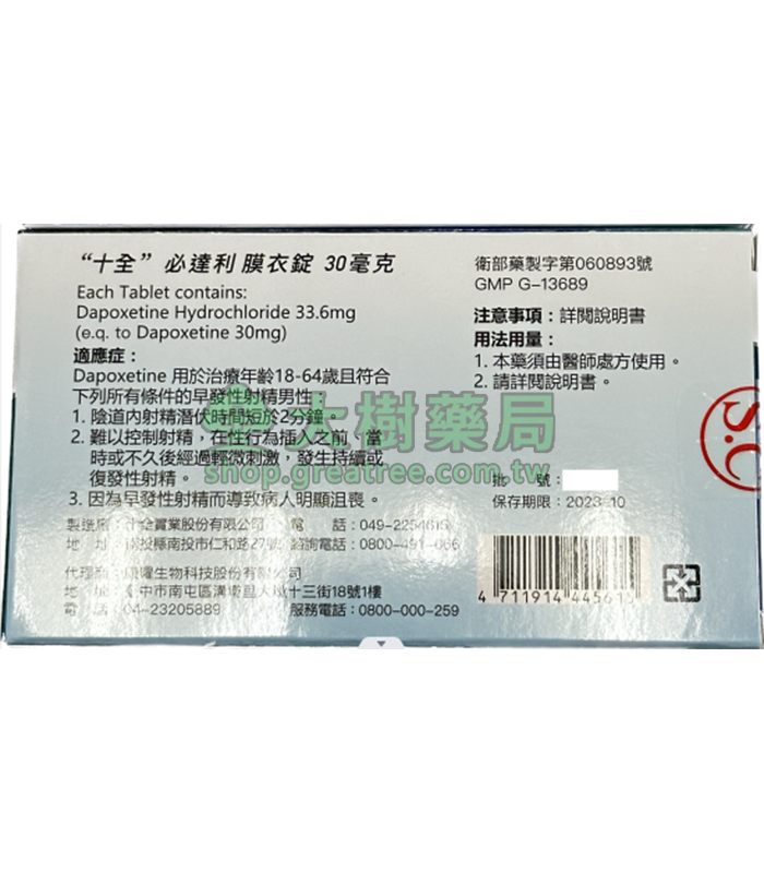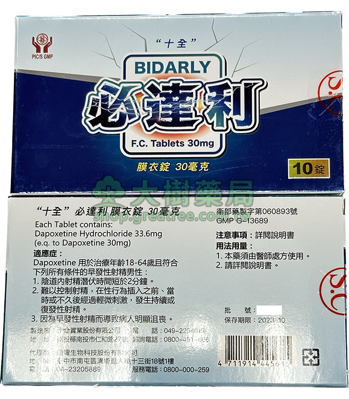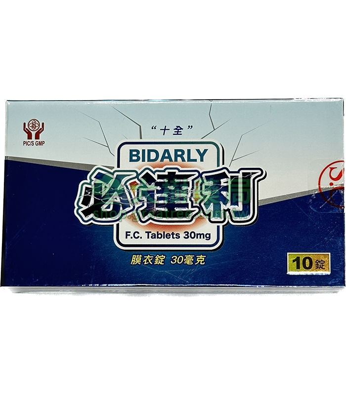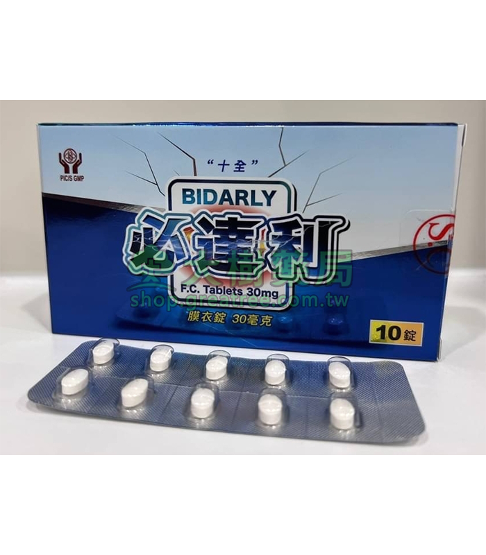 十全 – 必達利膜衣錠 Bidarly 30mg (10T/盒) 持久丨大樹藥局官方直營