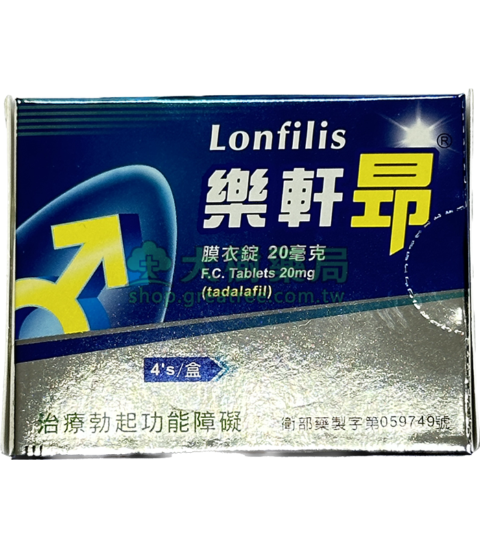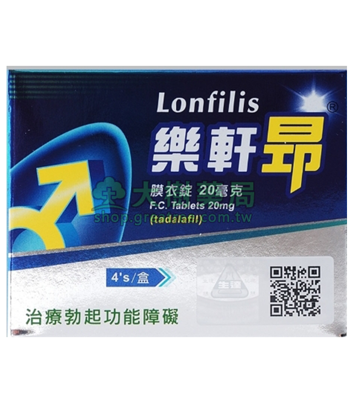 生達 – 樂軒昂 Lonfilis 20mg (4錠/盒)助勃+延時丨大樹藥局官方直營