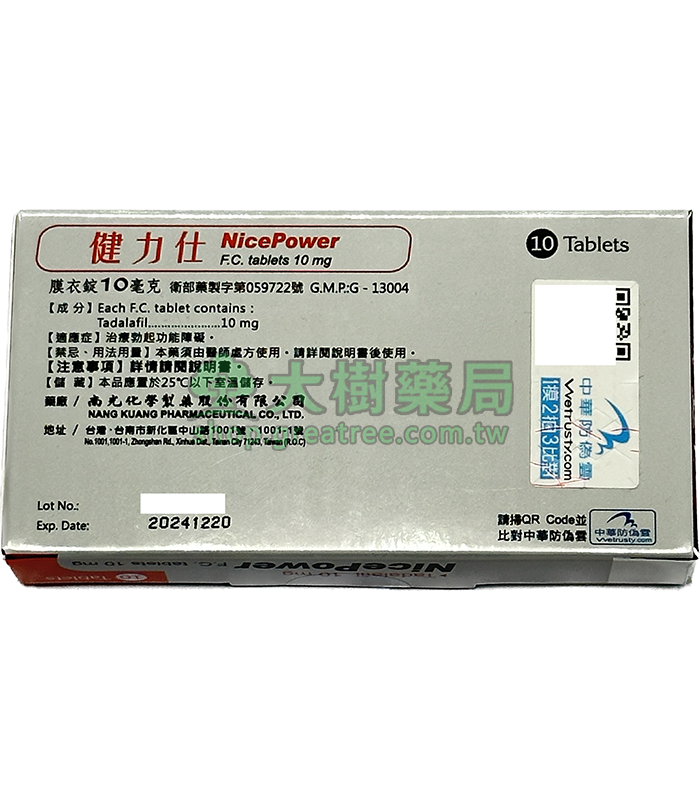 南光 – 健力仕膜衣錠 NicePower 10mg (10錠/盒) 【新包裝】Tadalafil丨大樹藥局官方直營