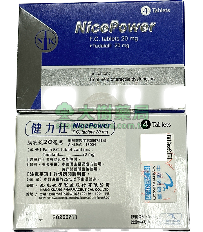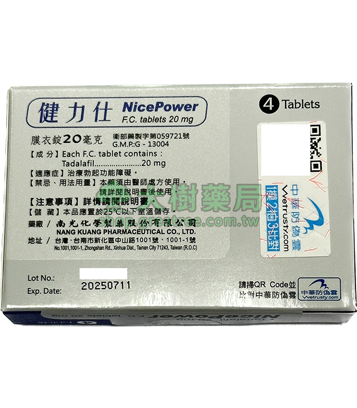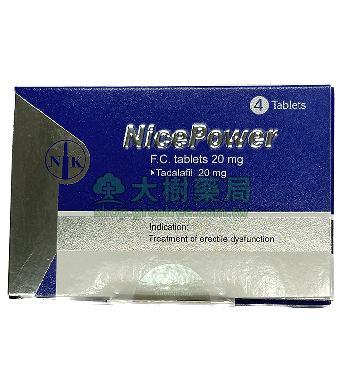 南光 – 健力仕膜衣錠 NicePower 20mg (4錠/盒) Tadalafil丨大樹藥局官方直營