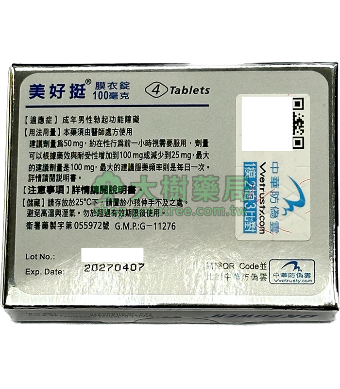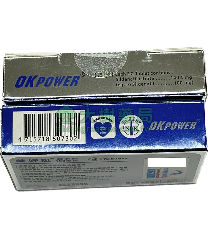 南光 – 美好挺膜衣錠 OKPOWER (4錠/盒) Sildenafil 100mg丨大樹藥局官方直營