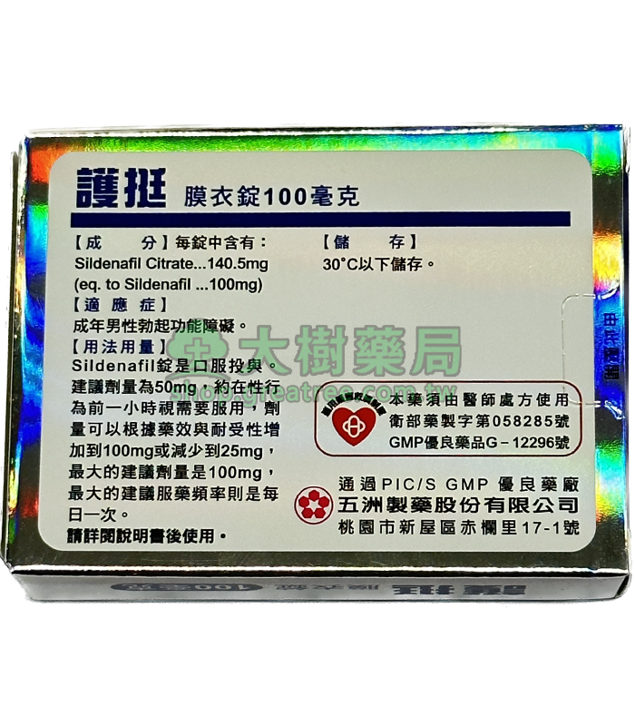 五洲 – 護挺膜衣錠 Sinaf 100mg (4粒/盒) Silenafil 100mg丨大樹藥局官方直營