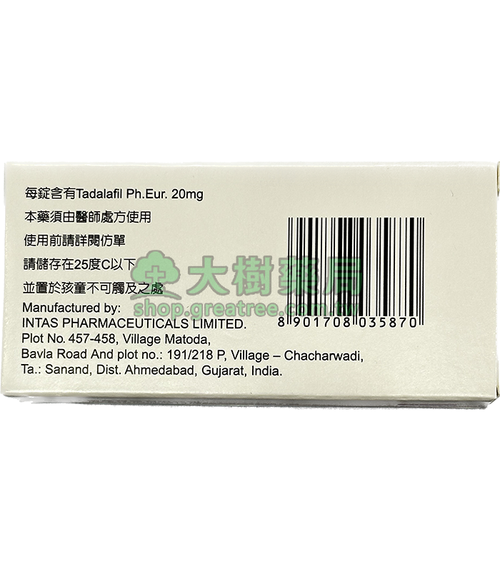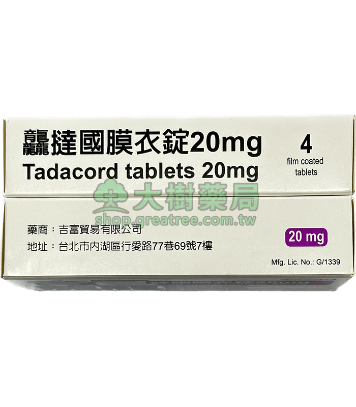祥勝 – 龘撻國膜衣錠 Tadacord 20mg (4粒/盒) Tadalafil丨大樹藥局官方直營