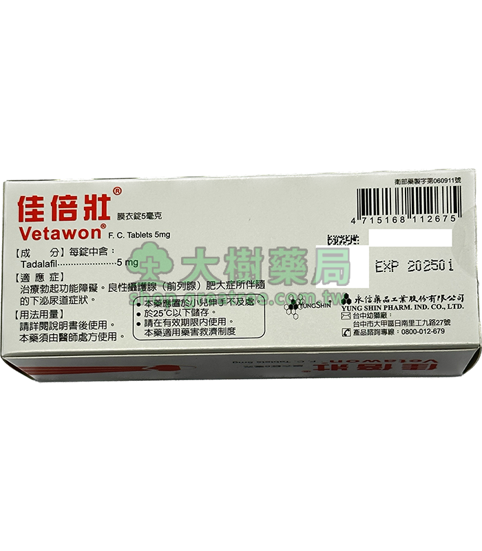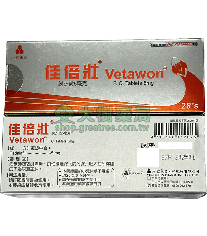 永信 – 佳倍壯膜衣錠 Vetawon 5mg ( 28粒/盒)【犀利士學名藥】丨大樹藥局官方直營
