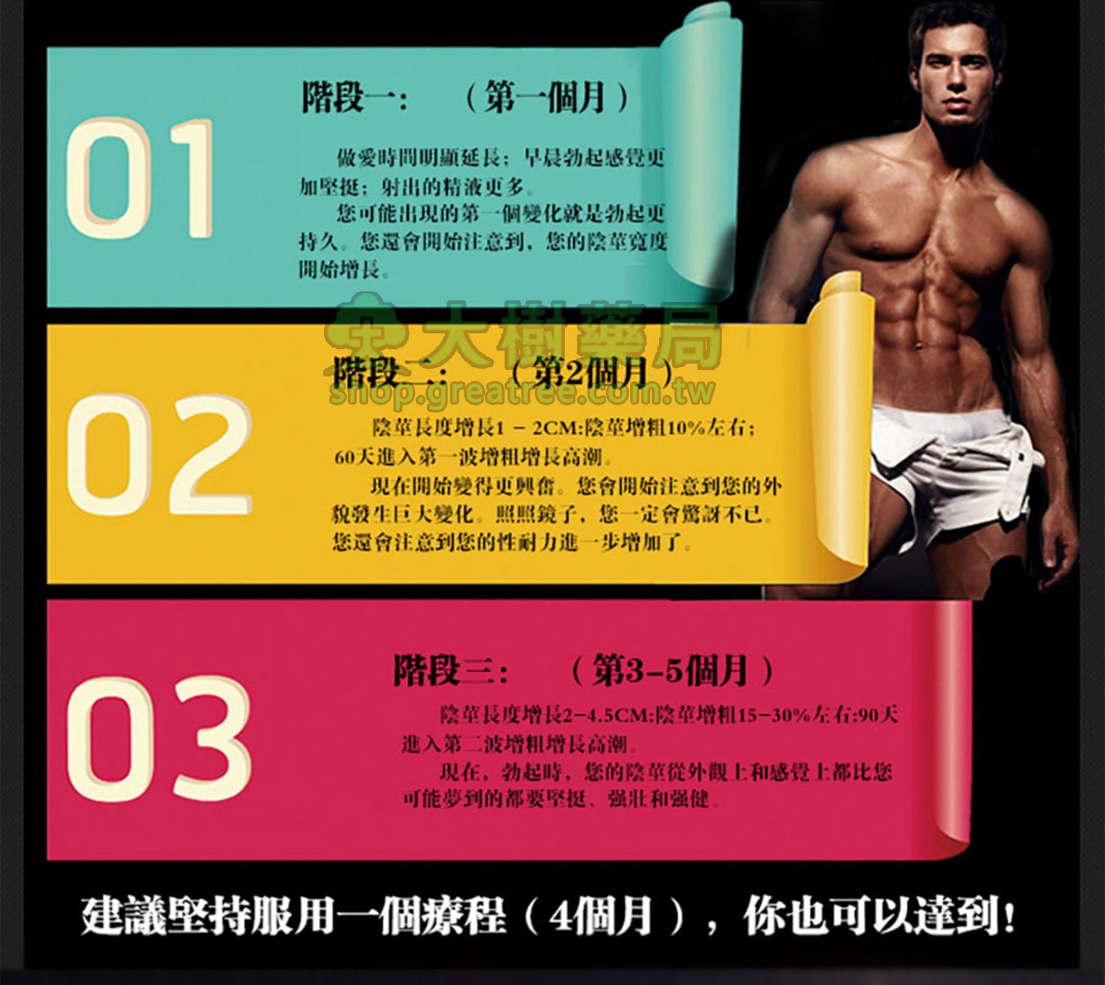 3、新鮮優質的原料:正確的配方,優質的原料,新鮮天然的成分,才能發揮最好的效果,提升男性的自尊、自信和生活質量。