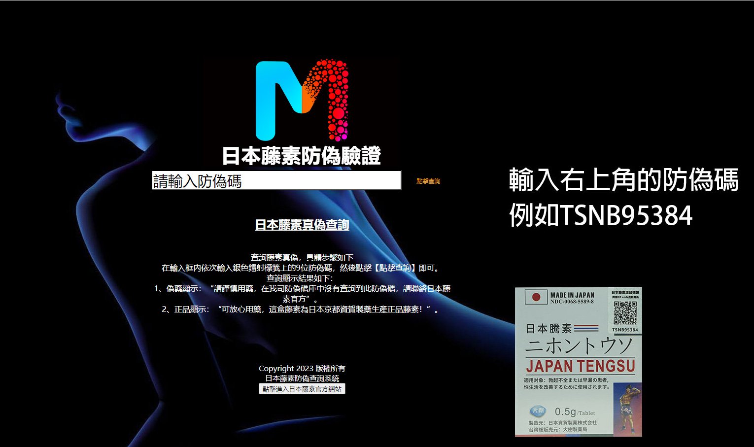 - 防偽碼:每一盒日本藤素都有格式為TSNB開頭的防偽碼,可以在日本藤素的官方網站中進行真偽查閱!
