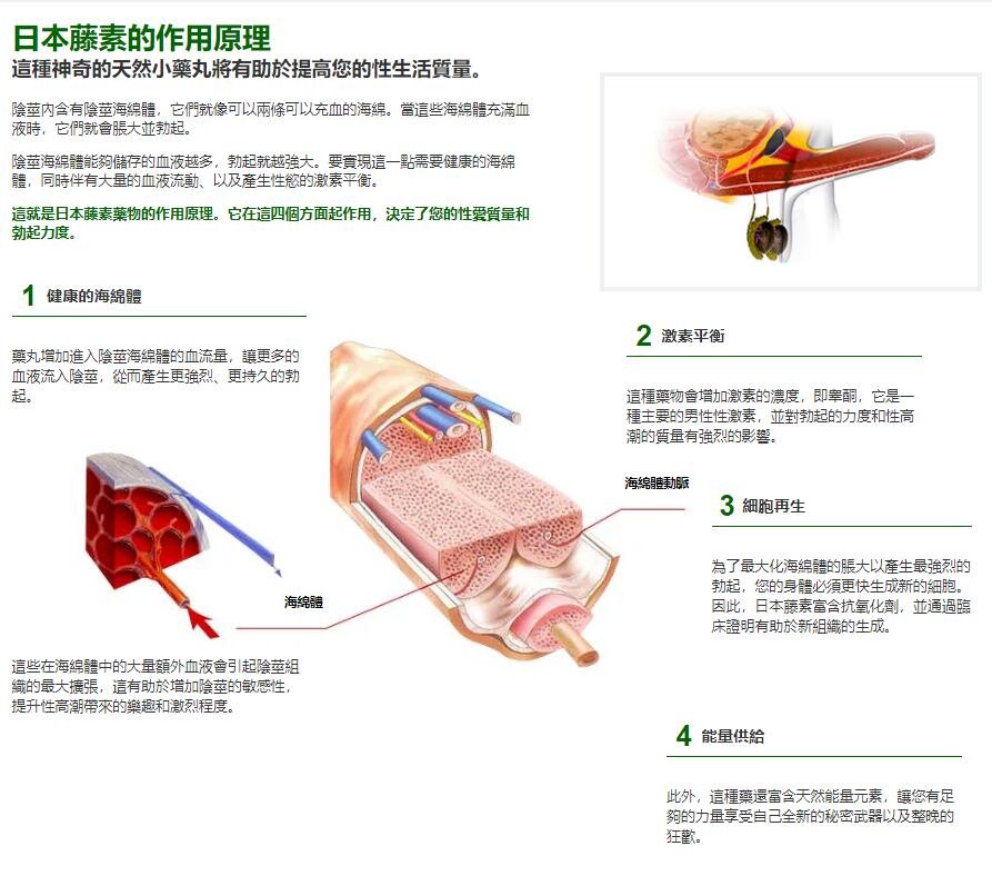 修復海綿體細胞、調節內分泌,停用後效果不反彈。